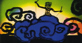「どうしてレンコンの穴はできたのか」という問いにこたえる民話を、民話研究家である宇津木が脚色した作品。 「高槻には二度とおちない」と約束したかみなりが、「約束を守っているよ〜」と合図の雷鳴をとどろかしながら上空を通過しようとして、眼下にハスの花が満開なのを見て、おもわず・・・