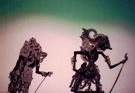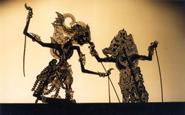 インドネシアのバリ島の「ワヤン」影絵の人形をつかって、寸劇を試みます。